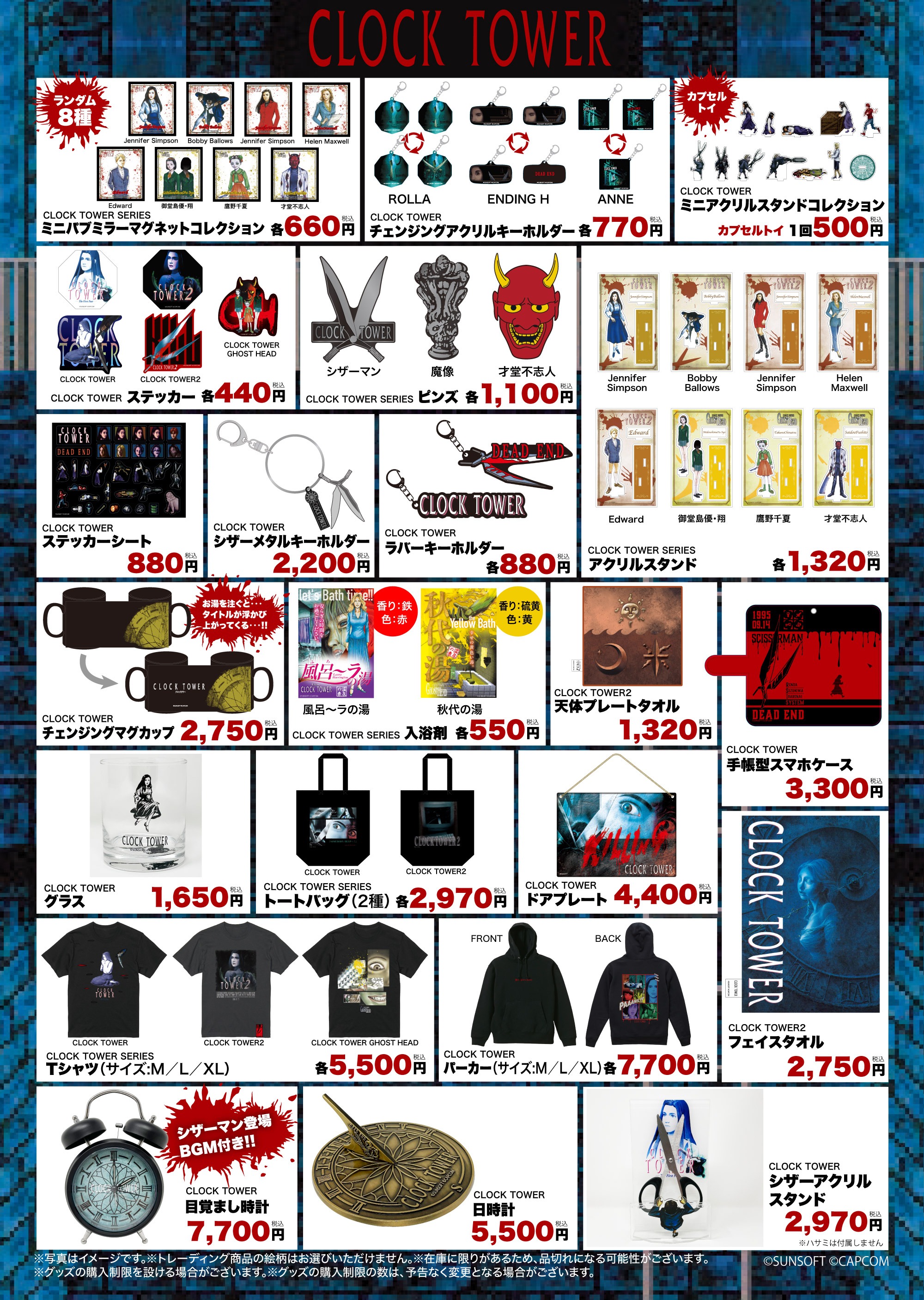 Indoor will host a Clock Tower pop-up shop in Japan starting on November 3, 2022. It will be held at THE AKIHABARA CONTAiNER location in Tokyo, Japan. The pop-up shop will feature merchandise from Clock Tower and Clock Tower 2: The Struggle Within (also known as Clock Tower 2: Ghost Head in Japan). People will have until November 23, 2022 to purchase this exclusive merchandise. [Thanks, Famitsu!] More than a handful of Clock Tower related goods will be available to purchase through the pop-up shop. This includes an assortment of keychains and acrylic standees, along with branded t-shirts and sweaters. One of the more notable pieces of merchandise includes a vintage looking alarm clock that plays the Clock Tower theme. Other goods include a tote bag, wall scroll, and mug. You can take a look at the merchandise that will be available below. In November 2010, Clock Tower was made available on the Nintendo Wii virtual console. The first entry of the series originally released on the Super Famicom in 1995, with the final entry in the series, Clock Tower 3, releasing on the PlayStation 2 in December 2002 in Japan and 2003 in subsequent regions. While inspiring spiritual successors like Haunting Ground and Nightcry, the Clock Tower series has not received any recent releases or re-releases. The post Clock Tower Pop-Up Shop to Appear in November appeared first on Siliconera. |