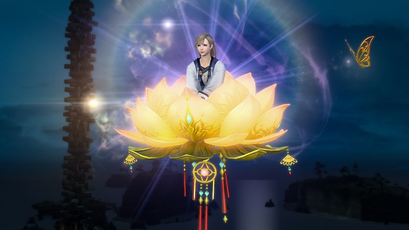The Final Fantasy XIV Online Store update for Halloween didn't only include costumes and pumpkin-based decorations, as it also meant the FFXIV Lotus mount is available everywhere. When the shop updated on October 25, 2022, the Mechanical Lotus joined the optional collection alongside the Clown's Attire, Modern Cosmetics: Clowning Around, Authentic Haunted Pumpkin Set, and Authentic Pumpkin Flower Vase. The FFXIV Mechanical Lotus mount first appeared in the Chinese version of the game back in April 2022. The worldwide release of it remains the same. When used, the person's avatar sits serenely in the center, with a calming glow and gilded butterfly hovering nearby. It costs $24. An official video offers a better look at the effect. As for the other items, they consist of two cosmetics and two furnishings. The $5 Clown's Attire gives a FFXIV player the Clown's Hat, Clown's Top, Clown's Shortgloves, Clown's Bottoms, and Clown's Boots. You can use dye on them to change their color, as shown in the official screenshots. The $4 Modern Cosmetics: Clowning Around provides matching face paint for it. Finally, the $5 Authentic Haunted Pumpkin Set and $5 Authentic Pumpkin Vase are furnishings. You will need access to a house in FFXIV in order to use them. The Authentic Haunted Pumpkin Set is the larger of the two. There is also an All Saints' Wake Halloween sale in effect in the FFXIV Online Store until November 17, 2022. The following items are temporarily reduced.