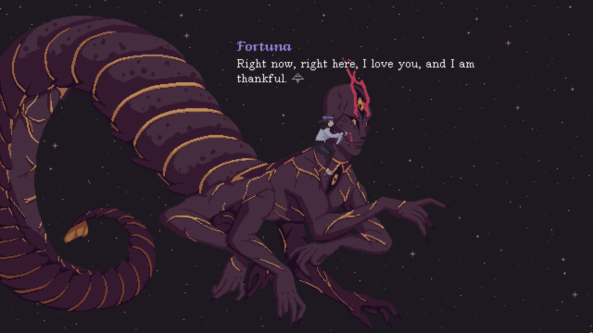 Branching narratives are a difficult thing to satisfyingly pull off in video games. Fortunately for developer Deconstructeam, the three-person team has over 10 years of experience crafting narrative experiences with an emphasis in decision-making. The Cosmic Wheel Sisterhood is a narrative fortune-telling adventure that explores human relationships through the lens of magic and divination. The game puts the player in the shoes of Fortuna, a Witch and expert in the magical art of card divination. Fortuna has been sentenced to live in exile and isolation at her asteroid home for a thousand years for predicting the fall of her Coven. The game starts 200 years into Fortuna's exile, with the Witch using a forbidden incantation to summon the Behemoth Ábramar, a dangerous and crafty being older than the universe who is capable of granting wishes. Unable to cope with a millennium of isolation, Fortuna makes a contract with Ábramar, and soon after her wishes start to manifest. [caption id="attachment_977971" align="alignnone" width="1200"] Alongside this change of events, Fortuna receives the power to craft her own deck of cards by using the four elements, which are Air, Water, Earth, and Fire. As the player, this means that the game lets you create different cards with a series of preset art assets. These are the sphere (or the background or the card,) the Arcana, and magical symbols. Players are granted full creative freedom. Aside from being an easy and entertaining mechanic, different combinations of the aforementioned four elements will imbue each card with different meanings and powers. To top it all off, the pixel art of the cards (and, honestly, the entire game) is gorgeous. When old friends and new visitors start to visit Fortuna, her new deck of cards will be able to unlock different fates for them, depending on the cards drawn and their powers. These different fates are surprisingly varied and carry a lot of weight for each character. This makes The Cosmic Wheel Sisterhood very replayable. Furthermore, subsequent runs will be shorter and faster, so getting new readings during divination sessions will be easier. Creating new cards opens the door for characters to experience different fates, and trying different contracts with Ábramar will reflect in different endings. [caption id="attachment_977972" align="alignnone" width="1200"] Speaking of which, the gameplay only serves to elevate the varied and colorful cast of characters. Fortuna has lived for a long time and as such, she has formed a lot of relationships with fellow Witches from her coven. While the main story elements of the game focus on her two closest friends, the fiery and strong Dahlia and pre-Industrial Revolution English darling Jasmine, the game is full of fantastic and fully fleshed characters. Some that really stuck with me include Fortuna's mentor Yu'enia, fellow Behemoth-summoning criminal Grethe, Fortuna's sister Patrice, and Ábramar himself. While some of these people only meet with Fortuna a few times, they still are a rich addition to the detailed world crafted by Deconstructeam. The game is divided by chapters, some of which focus on the present situation of Fortuna slowly regaining her freedom and future, while other focus on her past as a mortal before Ascending into a Witch. The glimpses into Fortuna's life before she Ascended are relatively short and especially poignant. One particularly strong section includes Fortuna's older sister Patrice retelling the story of how their mother left Spain with them during the Francoist dictatorship. These sections are exclusively narrative and are accompanied by some stunning pixel art. The present sections are still scripted, but players get a bit of freedom to create new cards, advancing the plot and doing some side activities. These include studying magic volumes and reading books that Fortuna has collected over the years. I recommend not skipping over the books, as these include a variety of guest writers and are beautifully written passages. [caption id="attachment_977973" align="alignnone" width="1200"] After finishing my first run of the game, I was left needing more. I was convinced that if I crafted different cards and tried my hand at a different contract with Ábramar, I could find a better ending for everyone. I played through the game two more times. During these runs, I found that new cards and readings can drastically change things. While some plot points are set in stone, most characters have a wide array of options written for them that varies depending on Fortuna's readings. For example, in each of my runs the fate of planet Earth was different. Some elements that Fortuna predicted in the first chapters came back in later chapters to haunt me or to help me in unexpected ways. In two runs, I predicted a member of Fortuna's Coven would be arrested. But in each one, it was a different character. This threw a wrench in my plans, as I assumed several plot points only had one resolution. I don't know how many variations there are available, but I'm eager to find out as I replay the game. [caption id="attachment_977974" align="alignnone" width="1200"] If there's something I wish the game could have done differently is the execution of its final chapter. I will try to be vague as to avoid spoilers. The final act of the game adds some new gameplay elements that focus on connecting with the Coven. While this is fun, the chapter goes on for a bit longer than the rest, which makes the pacing feel a bit odd. The soundtrack of the game perfectly accompanies every moment, with almost four hours of evocative and relaxing tracks created by artist Paula "Fingerspit" Ruiz. Of special note is the song that plays over the introduction after the tutorial, which is accompanied by an excellent animated, pixel-art opening. [caption id="attachment_977975" align="alignnone" width="1200"] The Cosmic Wheel Sisterhood is an intimate story about overcoming isolation, rebuilding yo