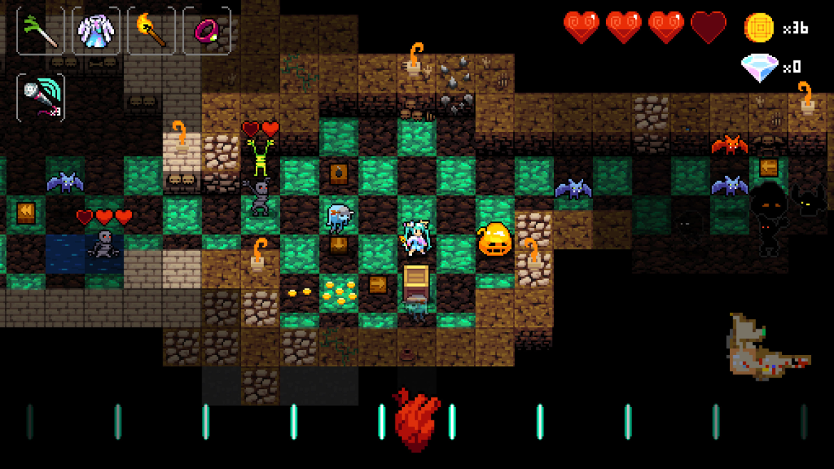 The new DLC, which was teased in an a April Fool's day tweet by the developers, features Miku herself as a playable character with her own abilities, including singing and hitting enemies with a leek. Picking up a set of armor while playing as her will also dress her in an official Miku outfit, and there are 15 extra music tracks to listen to while you play. Two of these songs are by the the original NecroDancer composer Danny Baronowsky. The DLC is currently available for $1.79 under an introductory offer, and will be $1.99 normally.