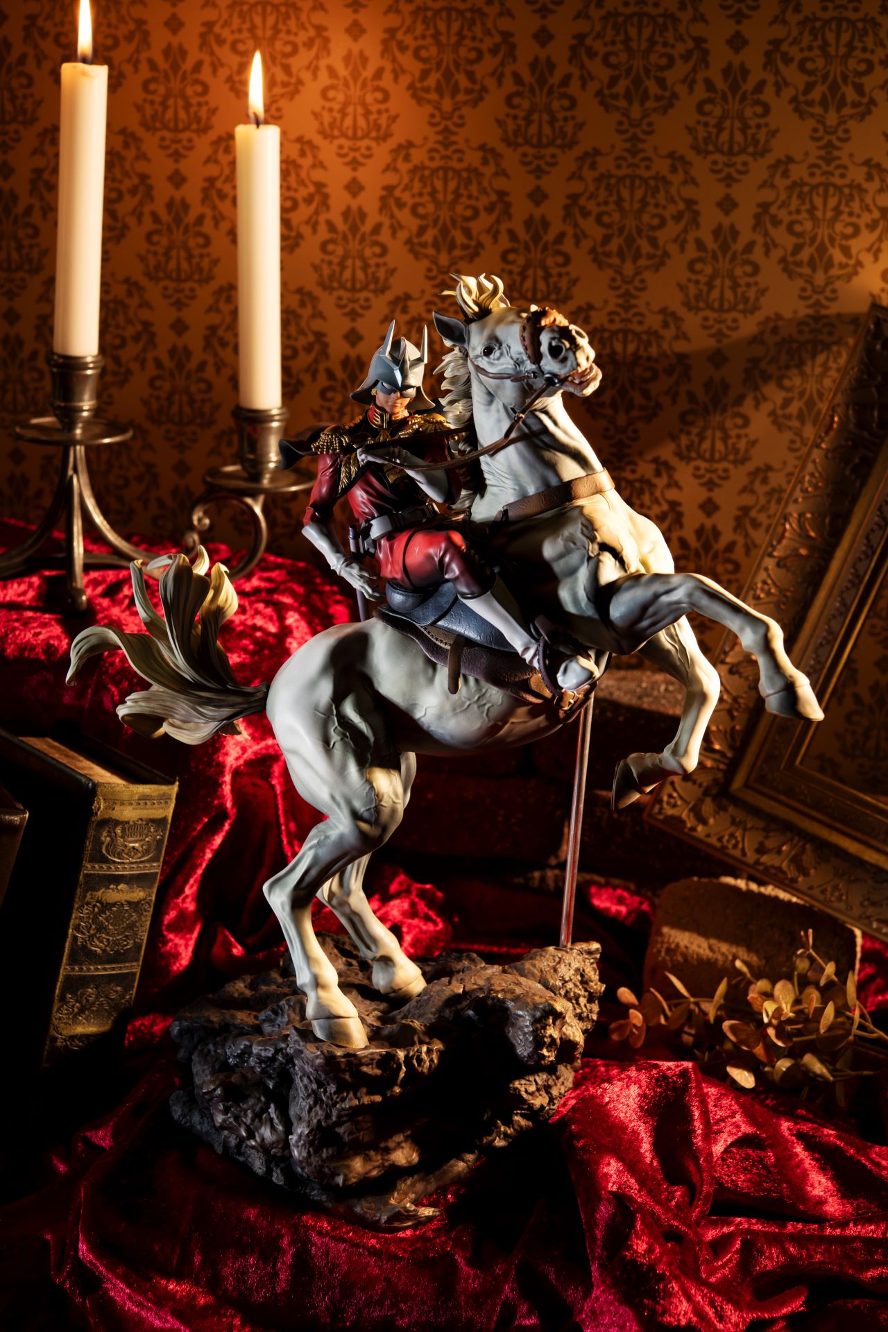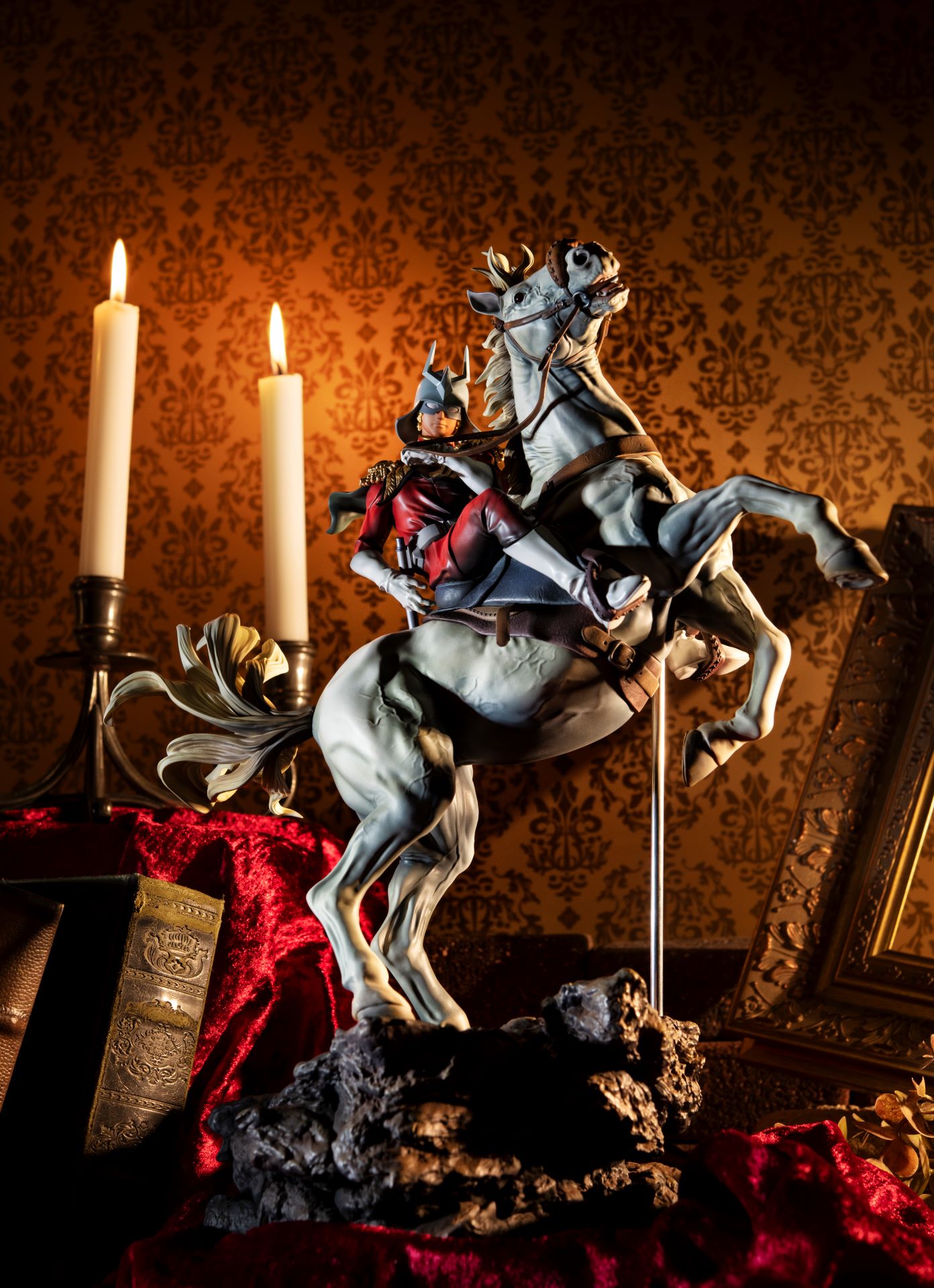 The company has yet to provide the exact measurements for this scaled figure. However, it noted that this figure will have the largest size when compared to prior GGG entries, such as Mobile Fighter G Gundam's Tohofuhai Master Asia. The figure will take inspiration from a scene in the inaugural 1979 anime, where Char Aznable actually rode a horse in his signature outfit.