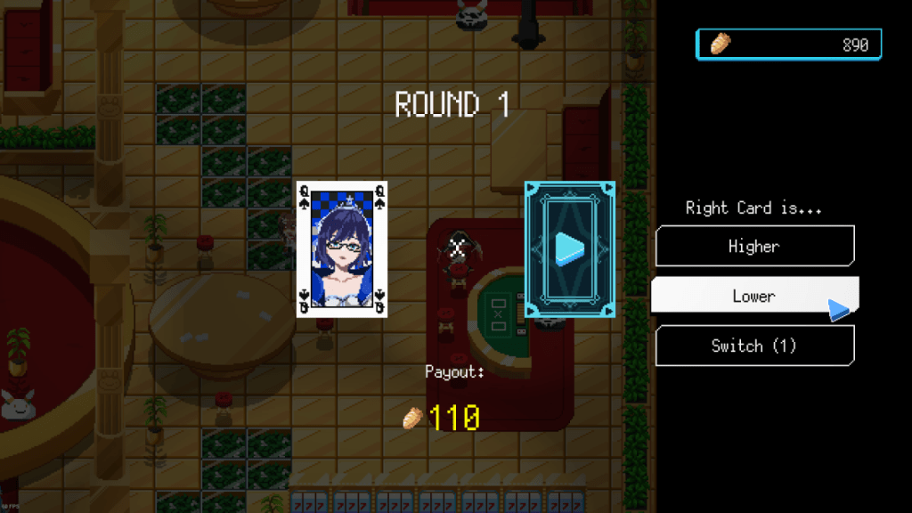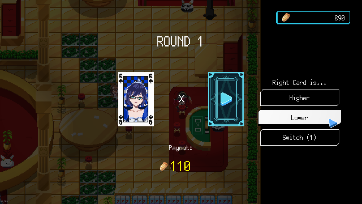 You might be forgiven for thinking that was all, but no, Holocure has more to give. Because multiple new areas have been added to the Holohouse mode, a chill sub-game added with the previous update. Instead of a small area with a house to decorate and small fishing and management minigames, there is now an expansive area to the south containing something like 10 or 11 new minigames. One is a simple crafter-gatherer game involving hitting things until resources fall out, then fashioning them into new tools or crafting items for commission via a different activity. Another is essentially a straight up remake of platformer Jump King, while a new Usada Pekora-themed casino has several games of both chance and skill. You can even train up your mascot workers to fight in the arena, for the most adorable bloodsport.