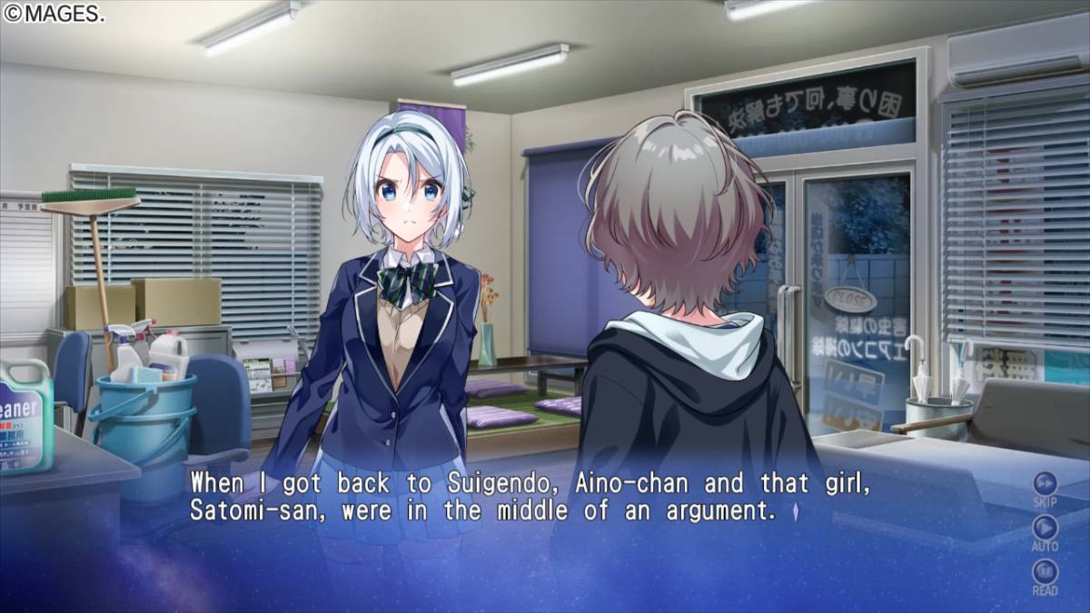 Junya's brother was something of a local hero in the town of Sumisora, and Junya constantly wrestles with survivor's guilt as a result. He feels he can't possibly measure up to his brother, and that he should have died instead. This inner conflict is another aspect that gets explored to varying degrees depending on which route you opt to follow, but it's one whose resolution I wasn't terribly satisfied with after all was said and done. Junya's spotty memories make him an unreliable narrator, but even with that I feel like some of the jumps his character makes could have been set up better.