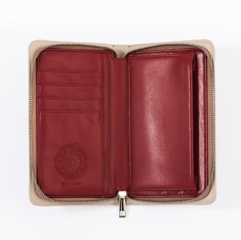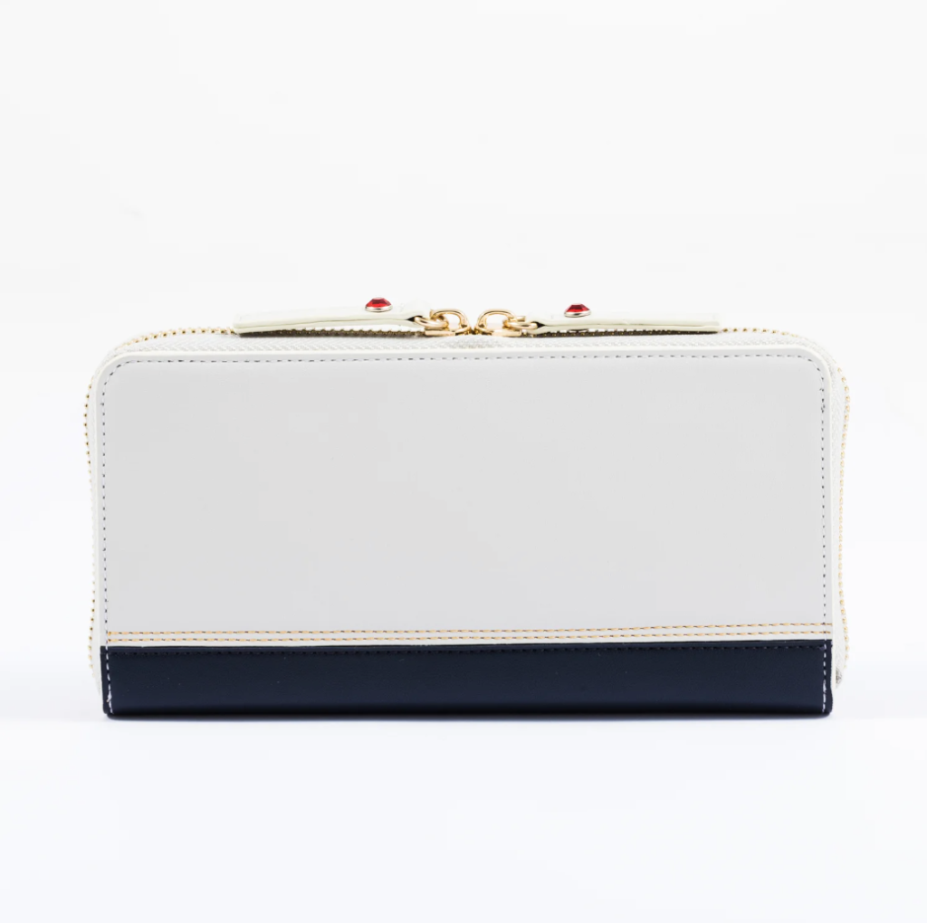 The three Frieren items are a long wallet inspired by her outfit, a smartphone case and wallet bag that looks like the trunk that she carries, and replicas of her earrings. The trunk bag and wallet are ¥15,400 each (~$104), while the pierced and clip-on versions of the earrings are ¥8,800 (~$60) each.