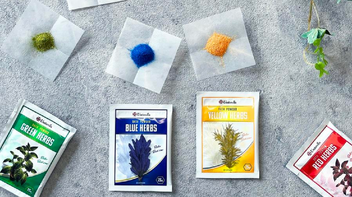 The Resident Evil Blue and Yellow Herb bath salts will appear in the online Capcom store from January 31, 2024 and in the physical ones from February 2, 2024. The webpage for the bath salts does not give any information on what scent or benefits they have. They cost 550 JPY each, which is around $3.70. As a note, Capcom would like to remind consumers that Umbrella, the "company" that made these bath salts, is fictional and does not represent any existing organization in real life.