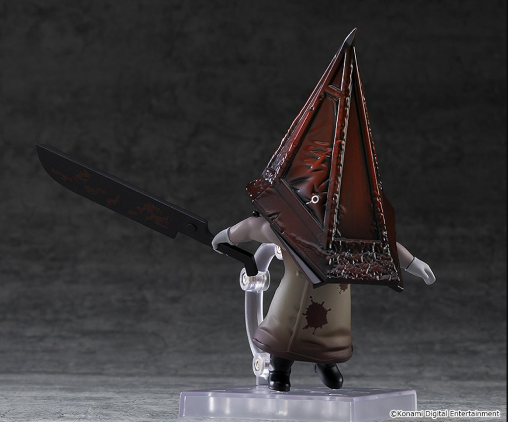 The Nendoroid Red Pyramid Thing is a fully articulated figure that stands approximately 100mm tall. It comes with several optional parts, including the iconic Great Knife, allowing for various poses. The figure is sculpted by artist Shichibee from Matsuda Model and produced in cooperation with Nendoron.