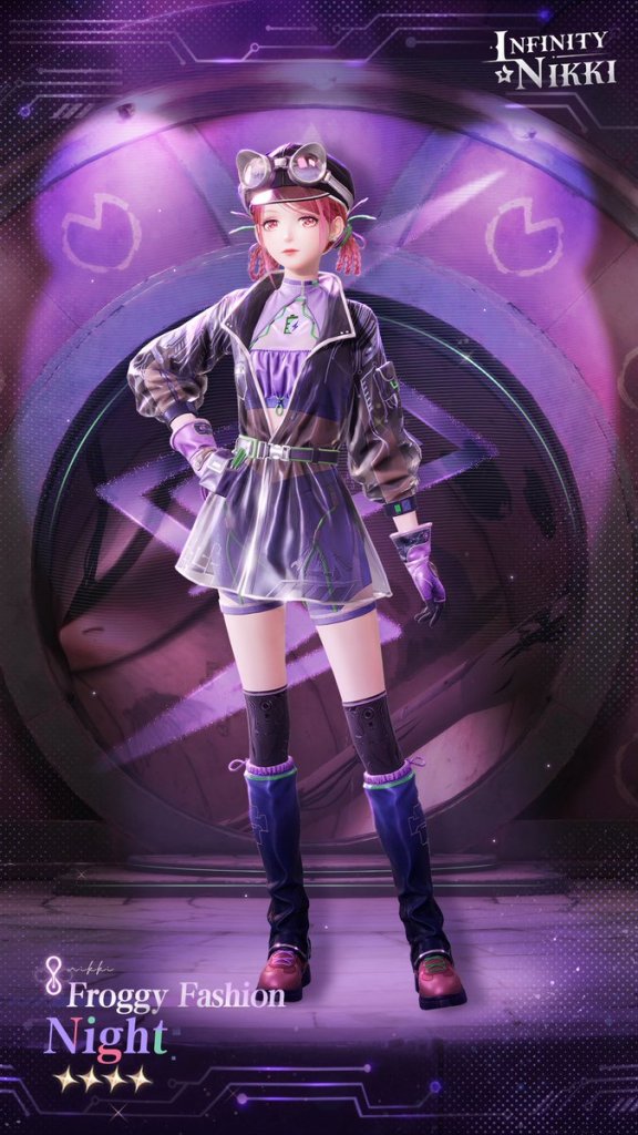 Next up, here are the two outfits you'll find in the new Infinity Nikki gacha banners, which again need earned crystals and Diamonds or paid currency. The one is Dreamy Glimmer, which has an evolved Dreamy Glimmer: Melody form and has the Whimsicality: Bubbles cosmetic ability. The other is Froggy Fashion, which could be evolved to Froggy Fashion: Night. It has the Electrician ability and an umbrella that can actually function as an in-game umbrella to keep rain off of Nikki during bad weather.