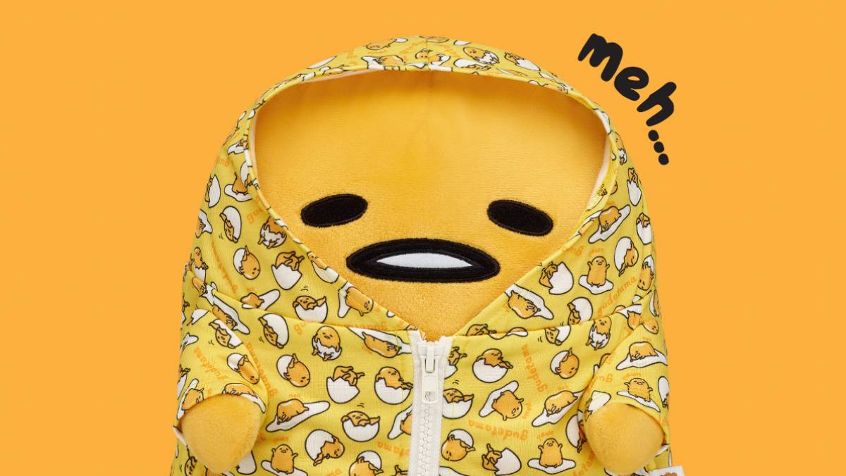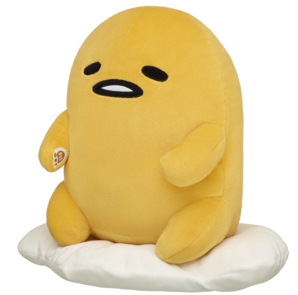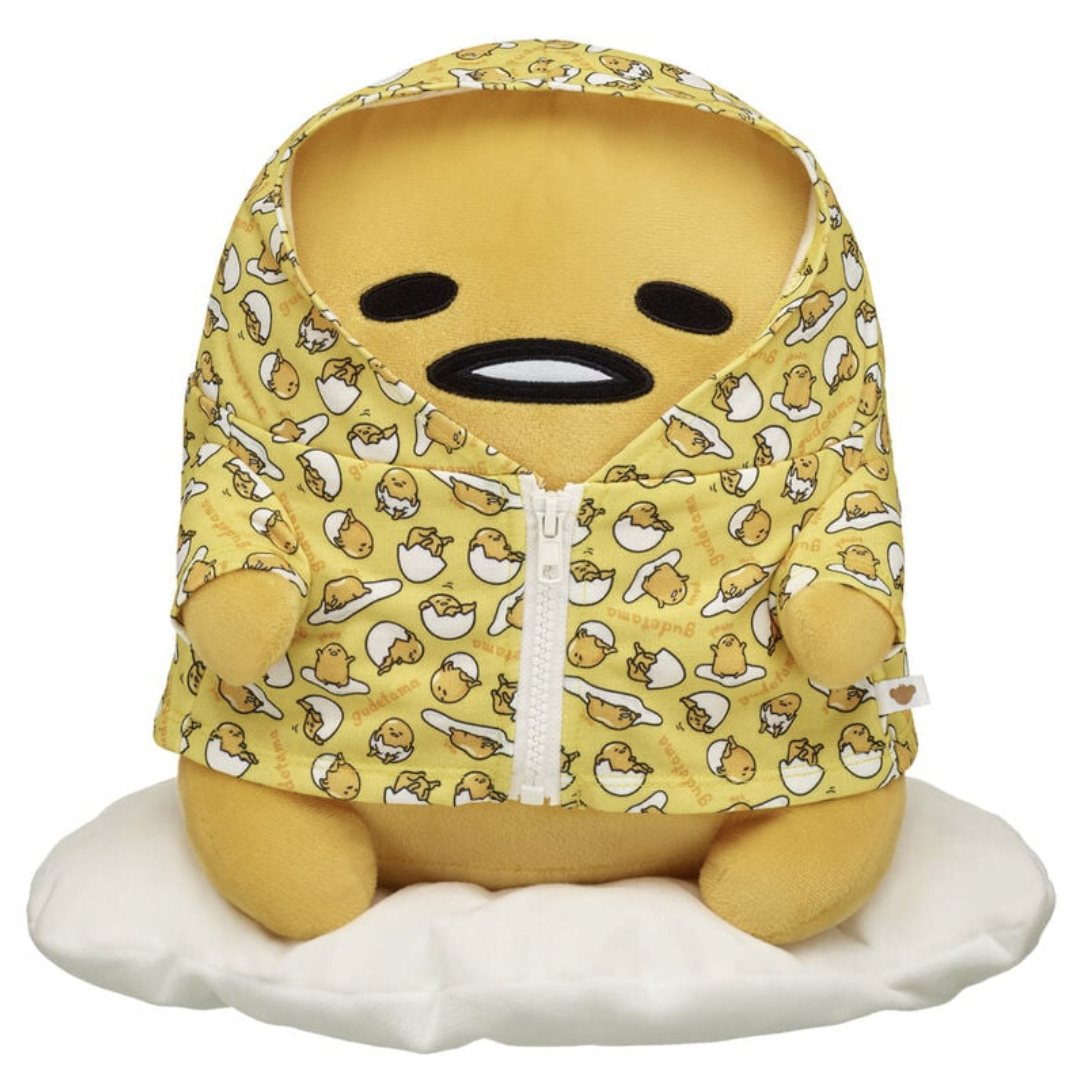 The Gudetama plush is at Build-a-Bear now, and people can buy it either alone or in a bundle with an outfit.