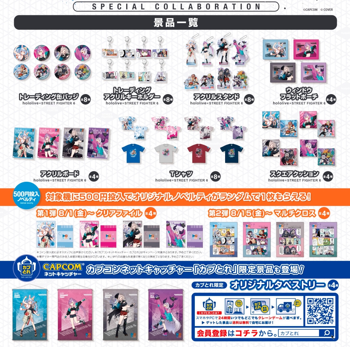 The first wave of Hololive - Street Fighter 6 crossover merchandise will be available in Japan on August 1, 2025. Capcom and Cover are also planning a second wave.
