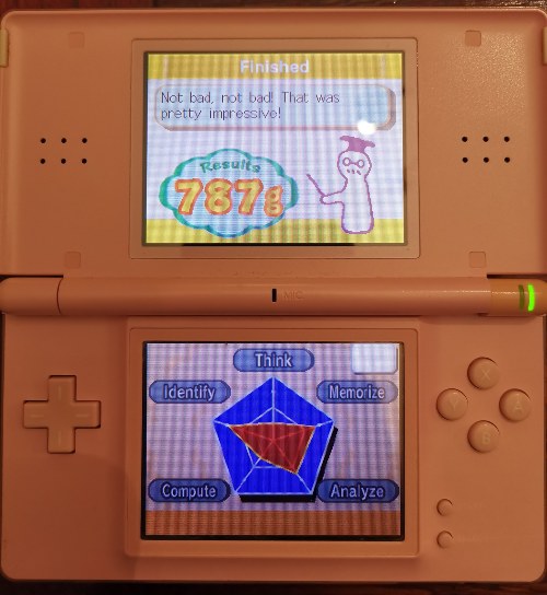 I played this DS game years ago, and it's a memory I've long forgotten about. Sadly, I don't have any previous grades to use as a comparison, but I doubt I was a child prodigy. After seeing my sister's grade from a time she too had repressed (likely from shame), I went in so confident that I ignored the practice mode. Instead, I registered as a new student and immediately went in for the kill.
