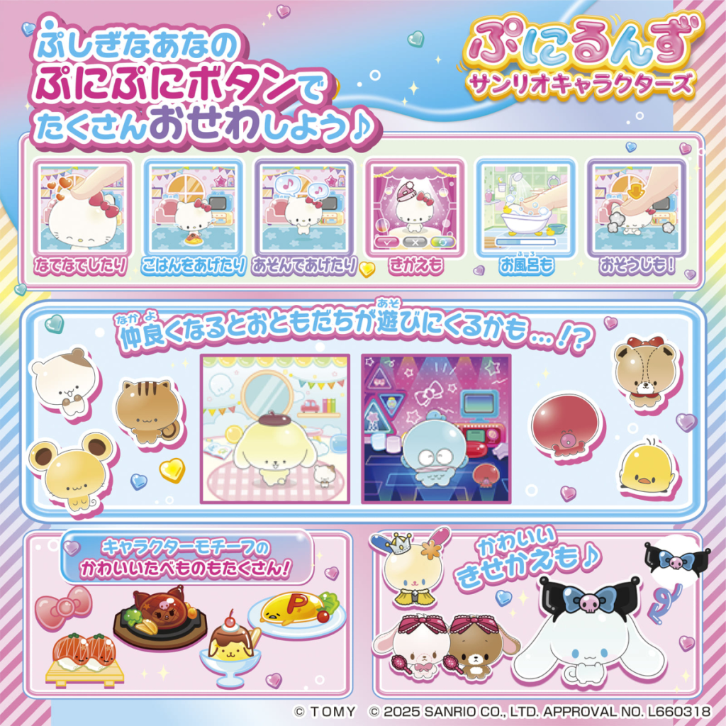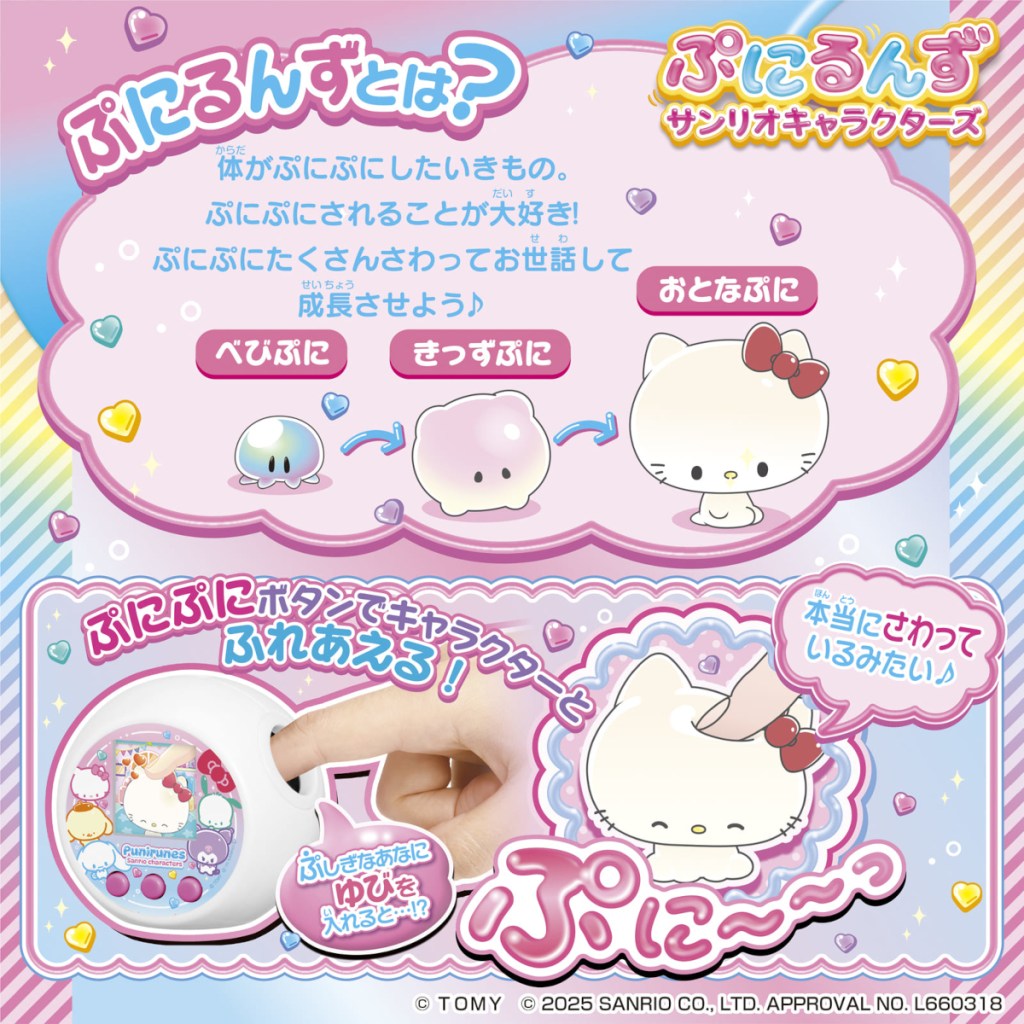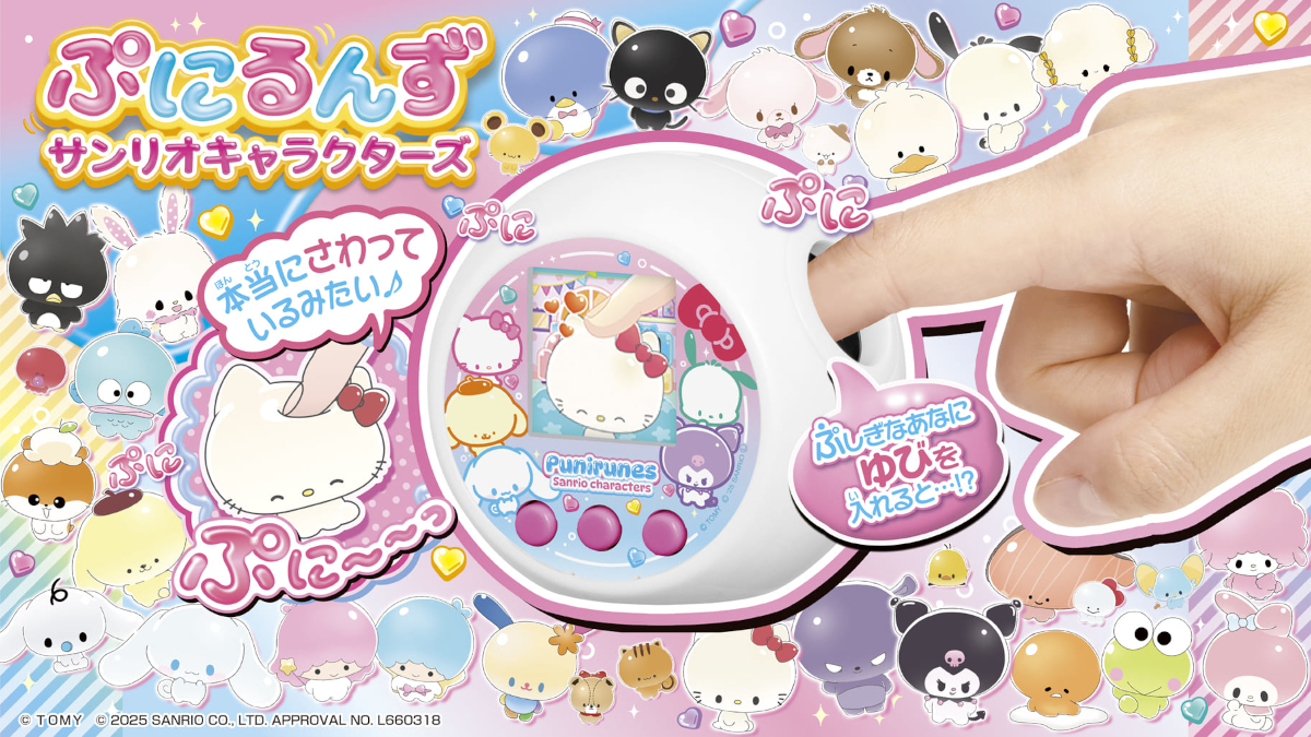 Sanrio revealed that Takara Tomy has released new Punirunes featuring the former's popular mascot characters like Hello Kitty and Pompompurin. This virtual pet toy has a gimmick that lets the owner insert a finger to literally touch the pet mascot they are raising.