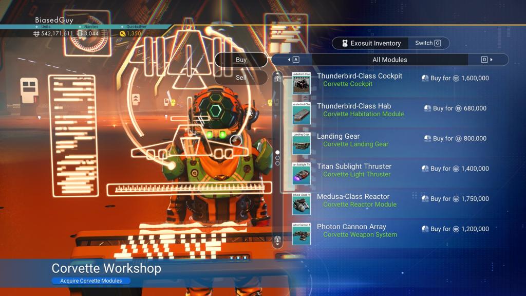The Corvette differs from other ships we own and use in the game. For starters, you don't buy these spaceships. Instead, you assemble the ship to make it your customized masterpiece for exploring all corners of space.