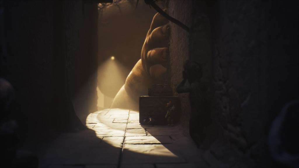 The first chapter takes place in Necropolis. Its definition: a cemetery belonging to an ancient city. Necropolis is a giant city encompassed by massive stone walls, its interior collecting dust. A dense sandstorm fog coats the land—it's impossible to see where the city starts and ends. Necropolis looks like an hourglass, yet it houses a ridiculously large threat: the Monster Baby. Crows also exist here, but there's not much for them to eat as the Monster Baby turns anything that moves into stone. This monster very much acts like the Eye we see time and time again in Little Nightmares, but in this case, the baby transforms residents into its playthings.