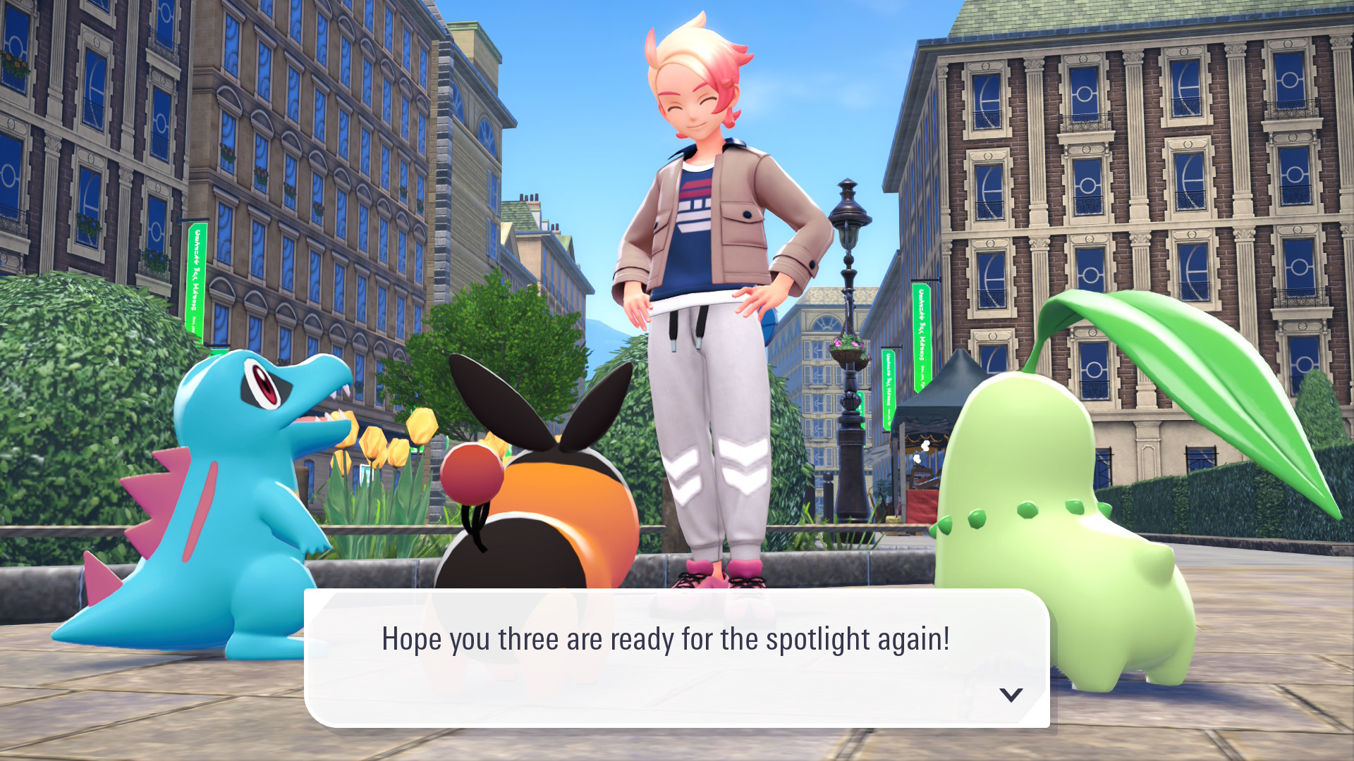 Chikorita, Tepig, and Totodile in Lumiose City