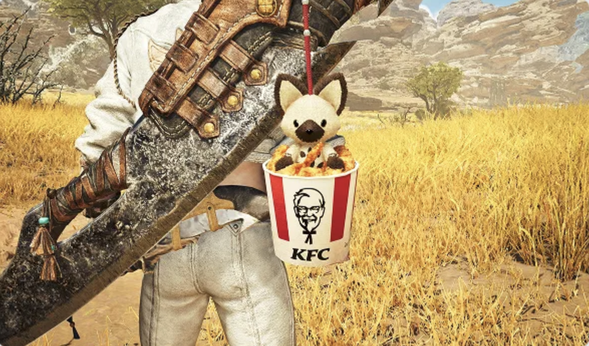 Capcom and the Japanese branch of KFC announced a crossover between the fast food restaurant and Monster Hunter Wilds that includes cosmetic in-game pendants of a Colonel Sanders Felyne and a KFC Chicken Bucket Felyne. These are tied to Gochiso Set White and Spice Up Set Red add-on packs that can come with either a ¥1,350 two-piece chicken meal or ¥1,700 meal. People can start ordering them online on November 13, 2025, though in-restaurant orders start on November 19, 2025, and the promotion is expected to last until December 16, 2025. Select stores will also have standee displays of characters with KFC food. There will also be a contest for people in Japan who make applicable online orders to win one of 20 themed hoodies or 200 pass cases.