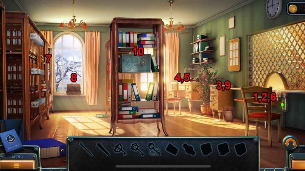 Since you need two candles for each candlestick, we'll ignore this part for now. In the meantime, head into the blue doorway to discover a library. Here are some steps to uncover its items: